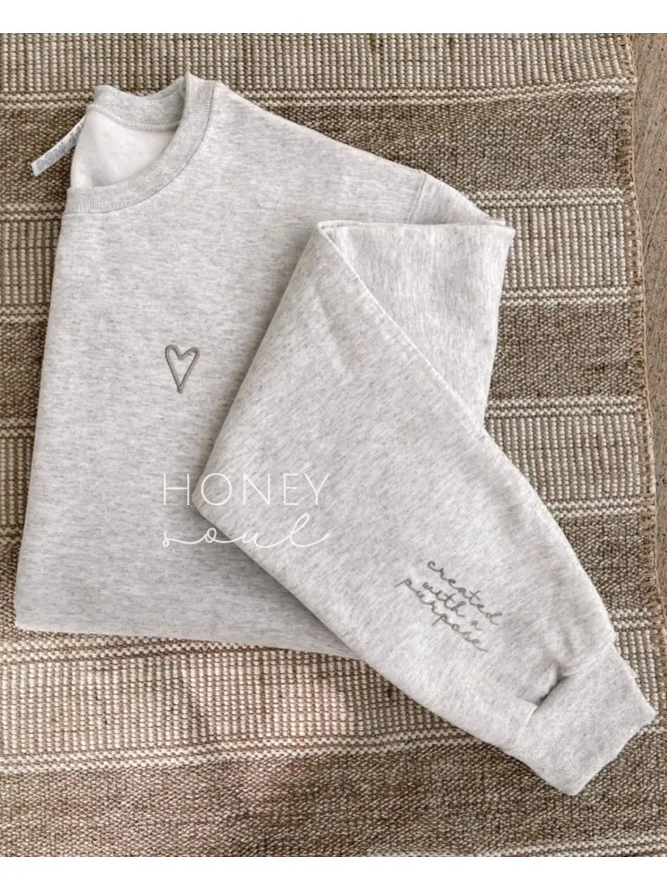 Embroidered Created With A Purpose Sleeve Sweatshirt with Embroidered Heart On The Left Chest (over the heart)