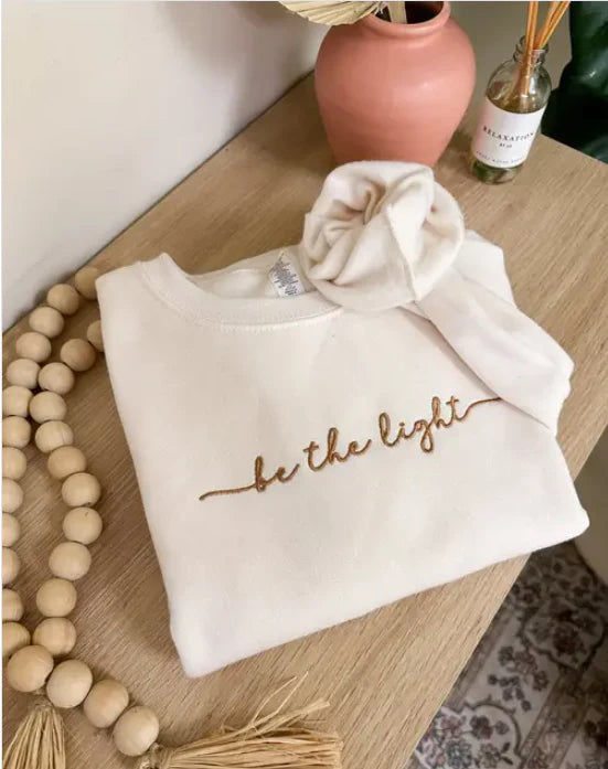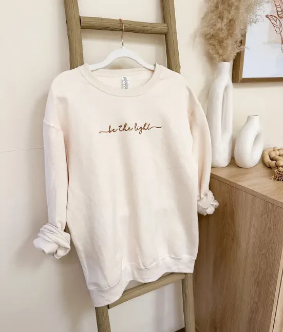 Embroidered Be The Light Sweatshirt | Christian Crewneck | Christian Sweatshirt | Faith Sweatshirt | Embroidered Crewneck