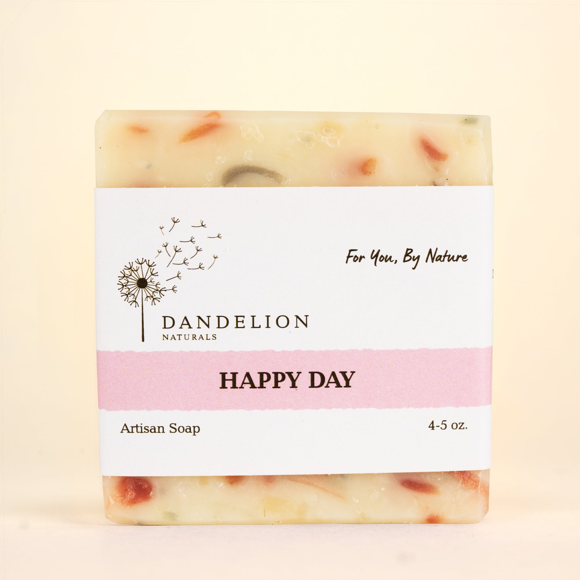 Happy Day is an invigorating and cheery bar scented with peppermint and orange essential oils. Named after our founder’s daughter, as a toddler she would say Happy Day instead of Happy Birthday. This bar features our signature base of olive oil, coconut oil, shea butter, and castor oil sprinkled with the shreddings of other soap batches for a cleansing experience that’s always exciting!