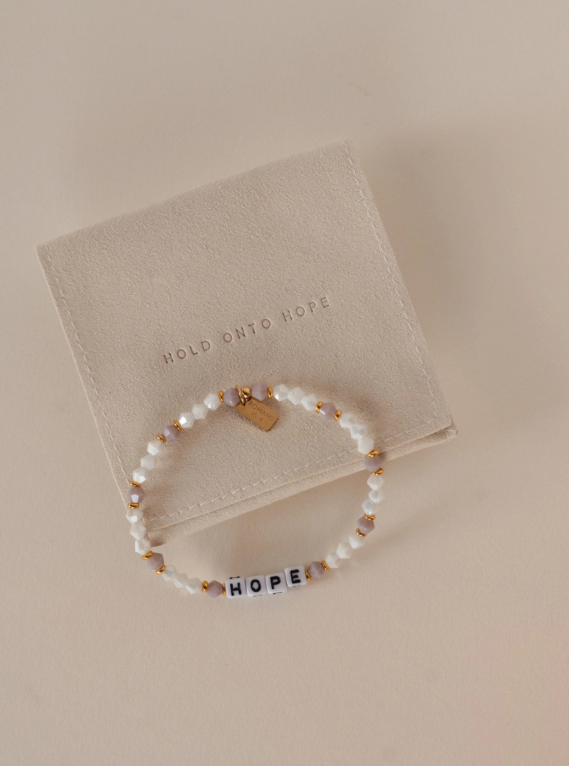 -Microfiber pouch with "Hold onto hope" stamped onto the outside