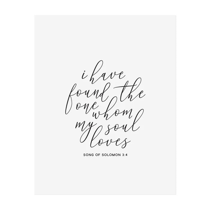Jesus is the one our souls are meant to love. He is the only one who can bring true fulfillment to our hearts, and the only one who can make us whole. This I Have Found the One Whom My Soul Loves Art Print is designed to represent this beautiful truth found in Song of Solomon 3:4.