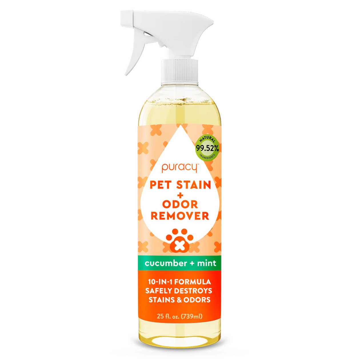 What does “pet” start with? Exactly. And that is why we are here. For that and all the other little surprises they may leave on the floor, the carpet, the furniture. We love ‘em but it’s impossible to love the accidents. Puracy’s Pet Stain & Odor Remover was designed to naturally, effectively, and easily get rid of the little “gifts” they leave behind.