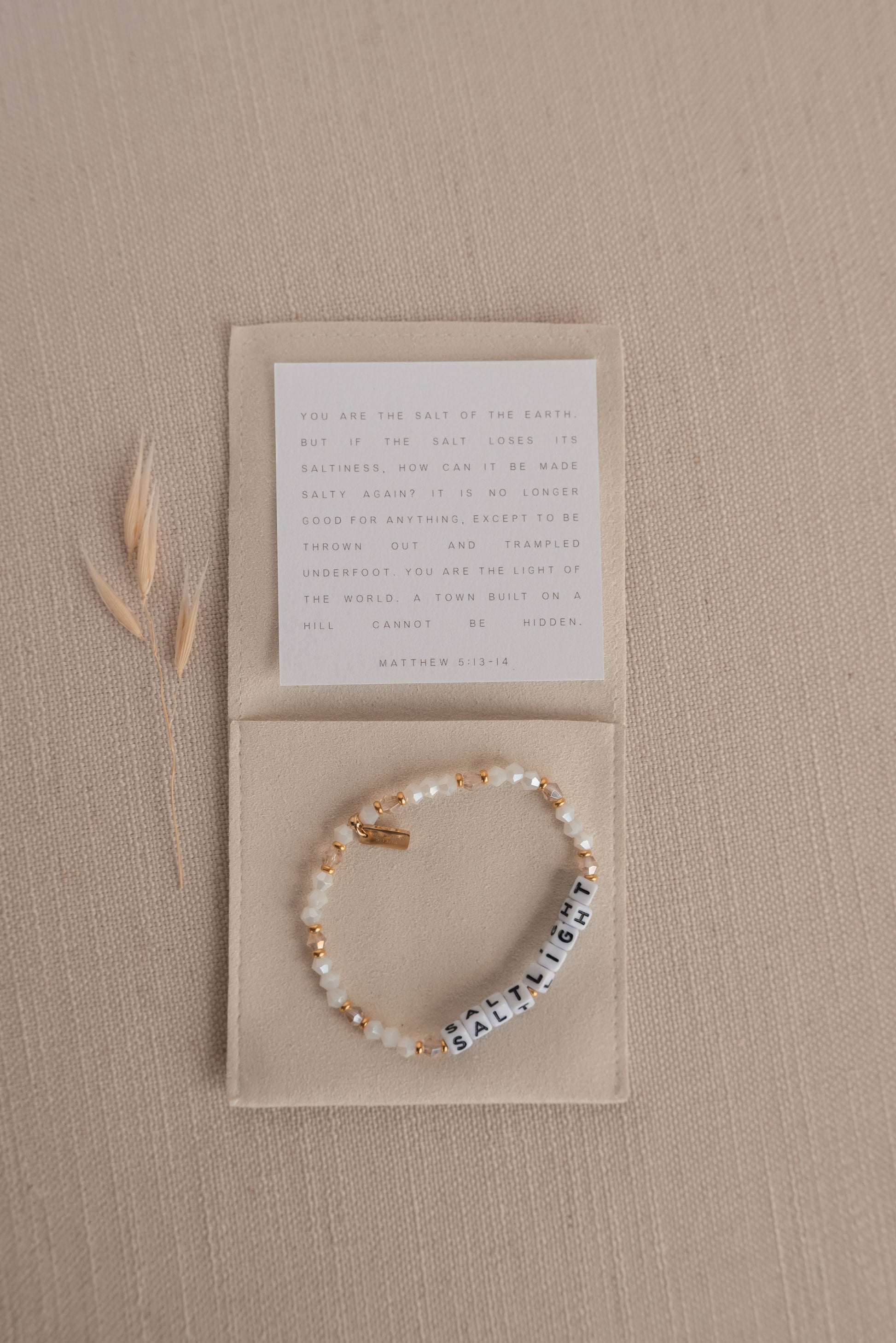 -tiny cotton card with scripture reference inside the pouch with bracelet