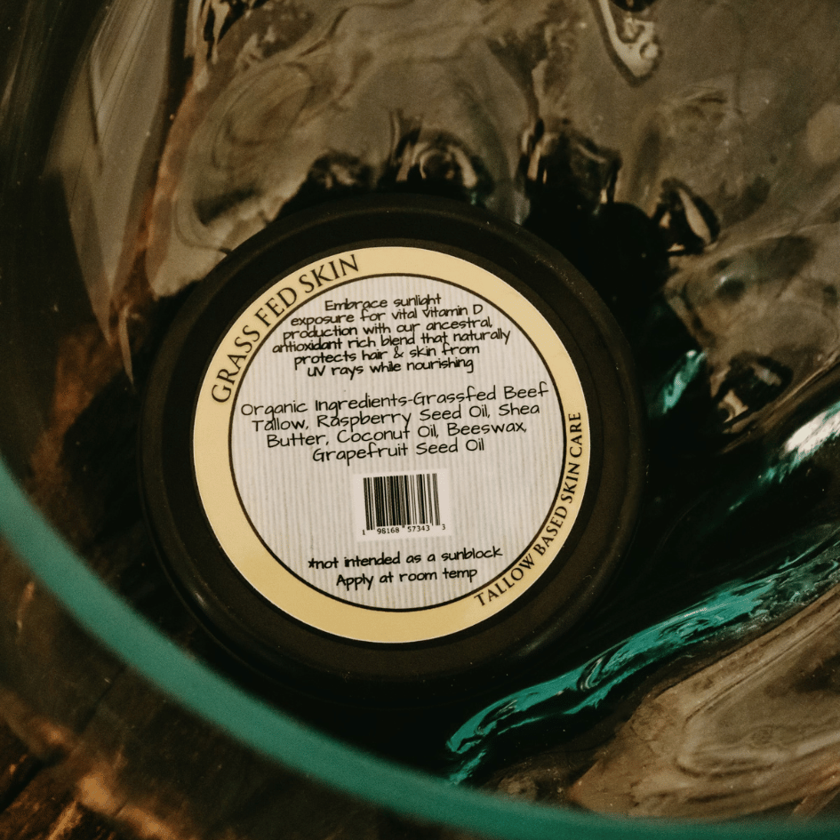 Embrace sunlight exposure for vital Vitamin D production with our ancestral antioxidant rich blend that naturally protects hair & skin from UV rays while nourishing. 4 oz Organic cold pressed raspberry seed oil proven effective at protecting against burns comparable to SPF 28-50! Organic Ingredients: Red Raspberry Seed Oil* Grassfed Tallow from Suet African Shea…