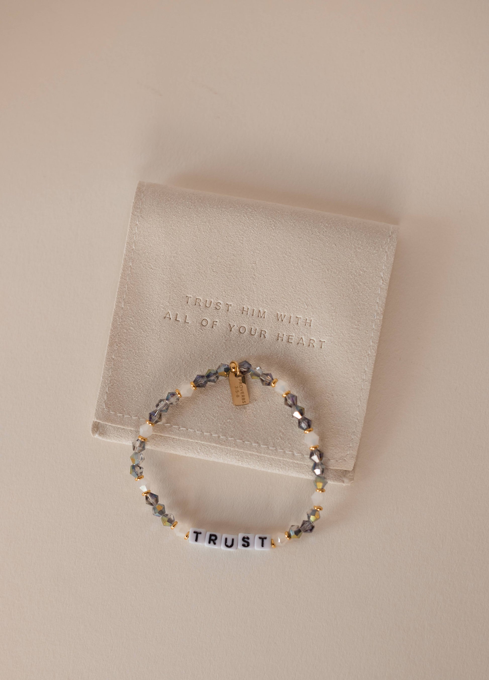 -Microfiber pouch with "Trust Him with all of your heart" stamped onto the outside